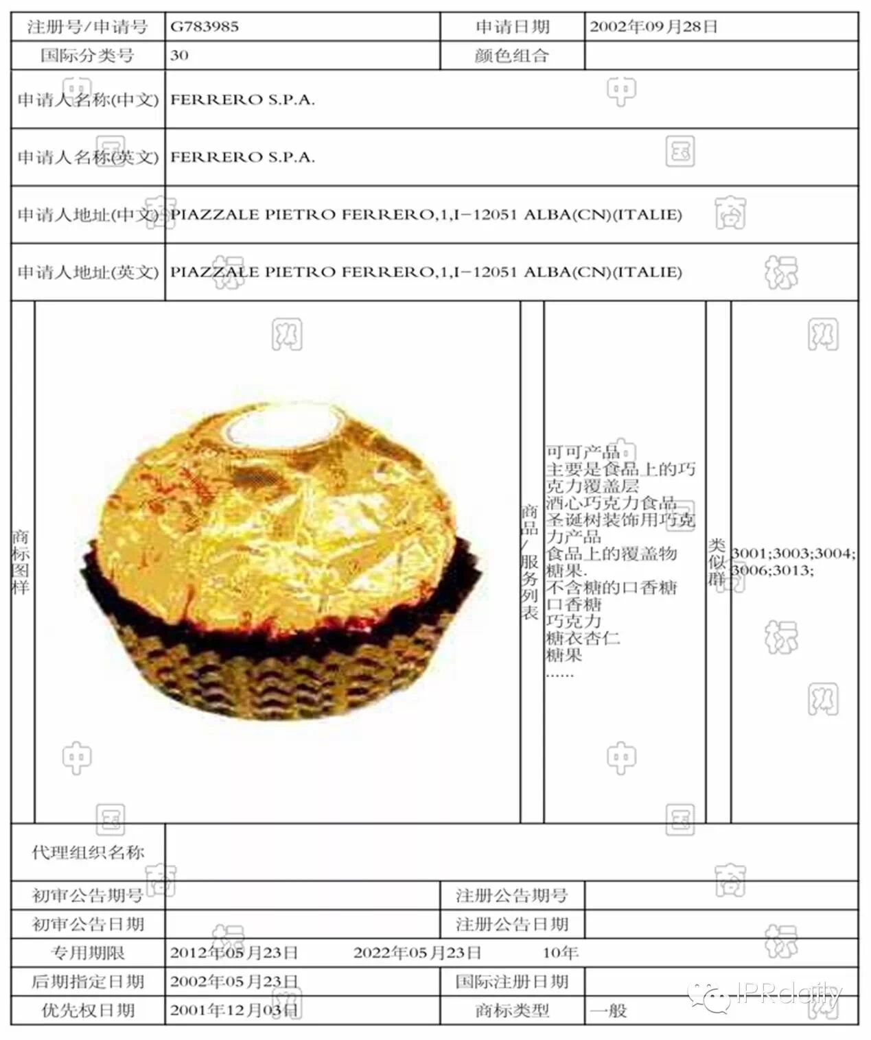 上图即是被侵权商标在中国商标网上的信息截图。费列罗有限公司通过注册立体商标的方式,将其独有的“金色褶皱锡纸球状包装+顶部白底心形小标贴+咖啡色底托”商品包装进行了保护。那么,金丝猴生产的“巧斐罗”巧克力的外包装又是什么样子的呢?