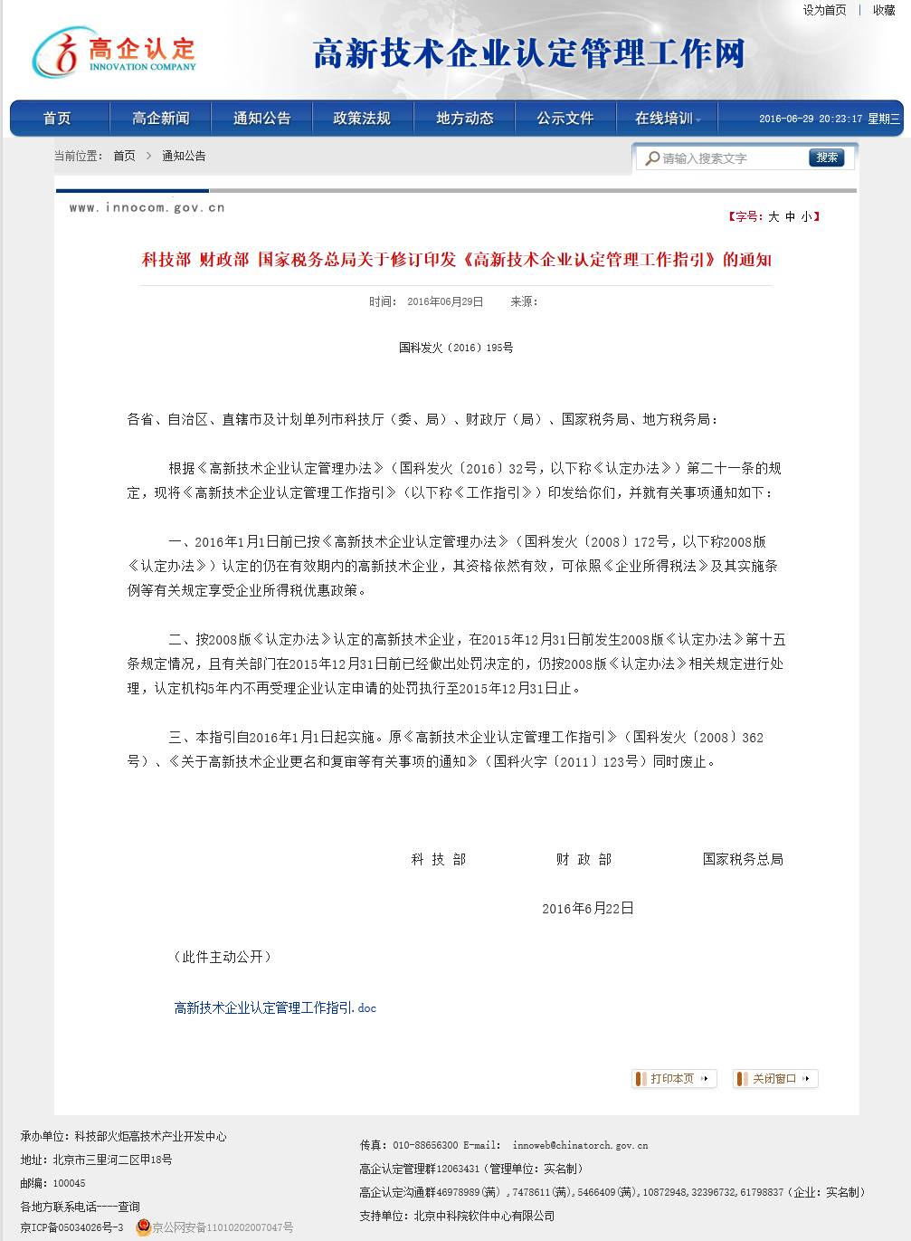 根据《高新技术企业认定管理办法》(国科发火〔2016〕32号,以下称《认定办法》)第二十一条的规定,现将《高新技术企业认定管理工作指引》(以下称《工作指引》)印发给你们,并就有关事项通知如下: